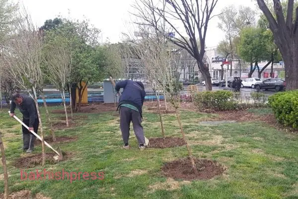 شخم زنی خاک و تشتک زنی دور درختان در محدوده مرکزی شهر